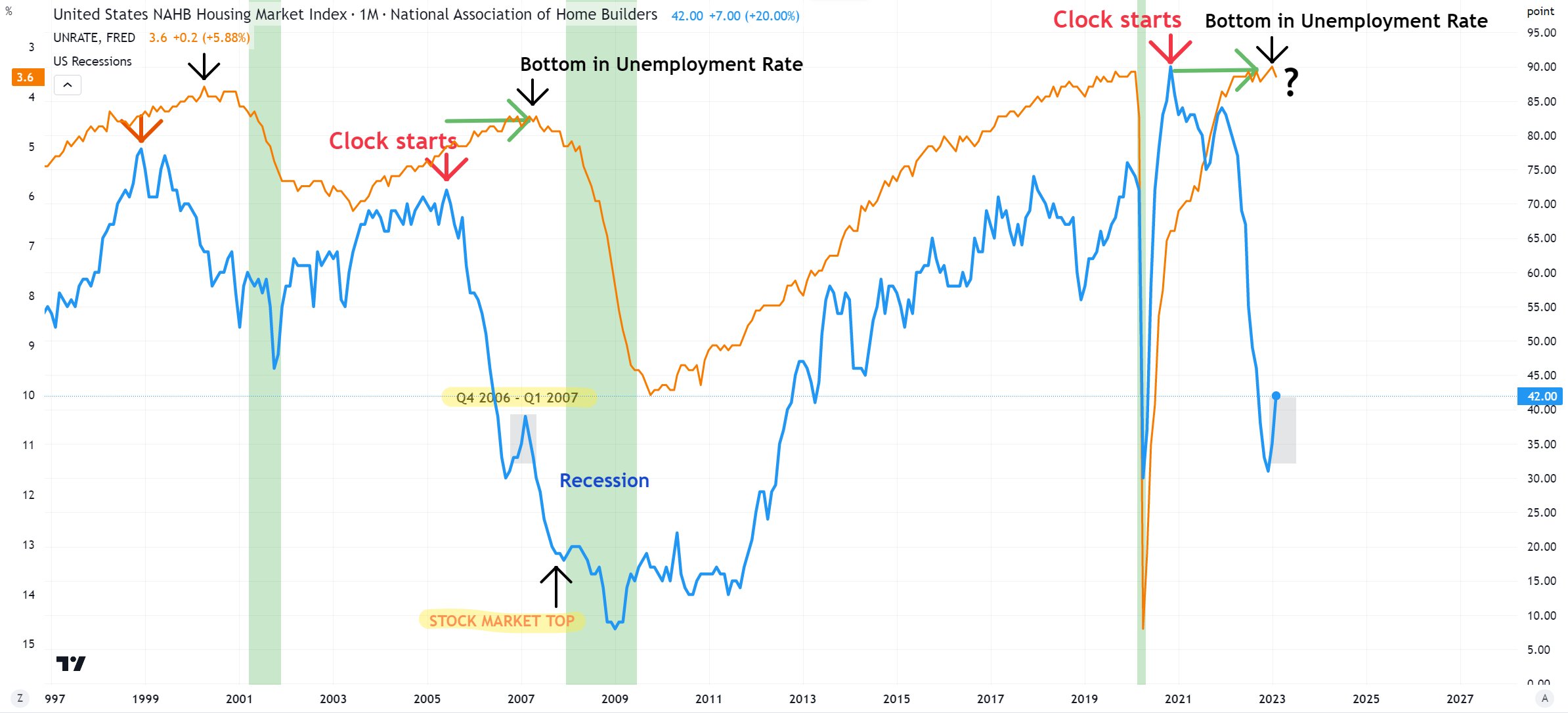 Zeberg에 따르면 HMI와 미국 실업률은 대 금융 위기를 촉발한 2007년 주택 시장 붕괴 당시와 매우 유사하게 작동하고 있다고 합니다. 아래 그림을 확인해 볼 필요가 있죠.