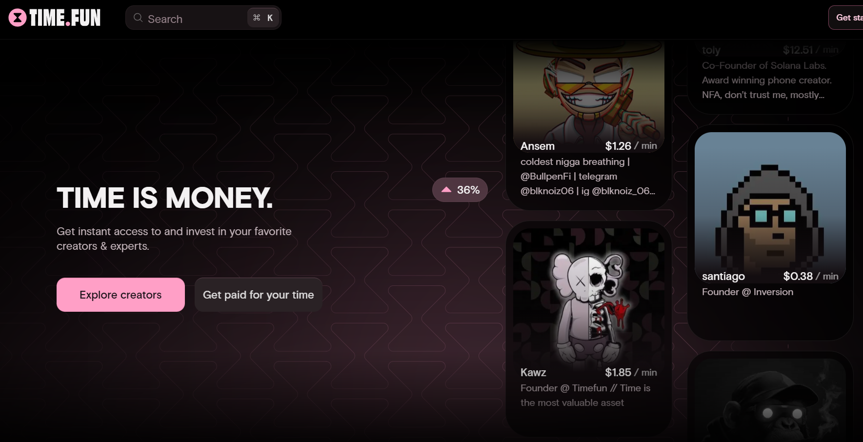 - Time.Fun: 솔라나 블록체인에 기반한 이 플랫폼은 사용자들이 자신의 시간을 창조자와 공유할 수 있도록 해줍니다. 이는 개인의 시간을 토큰화하여 거래할 수 있는 새로운 시장 형성을 의미합니다.