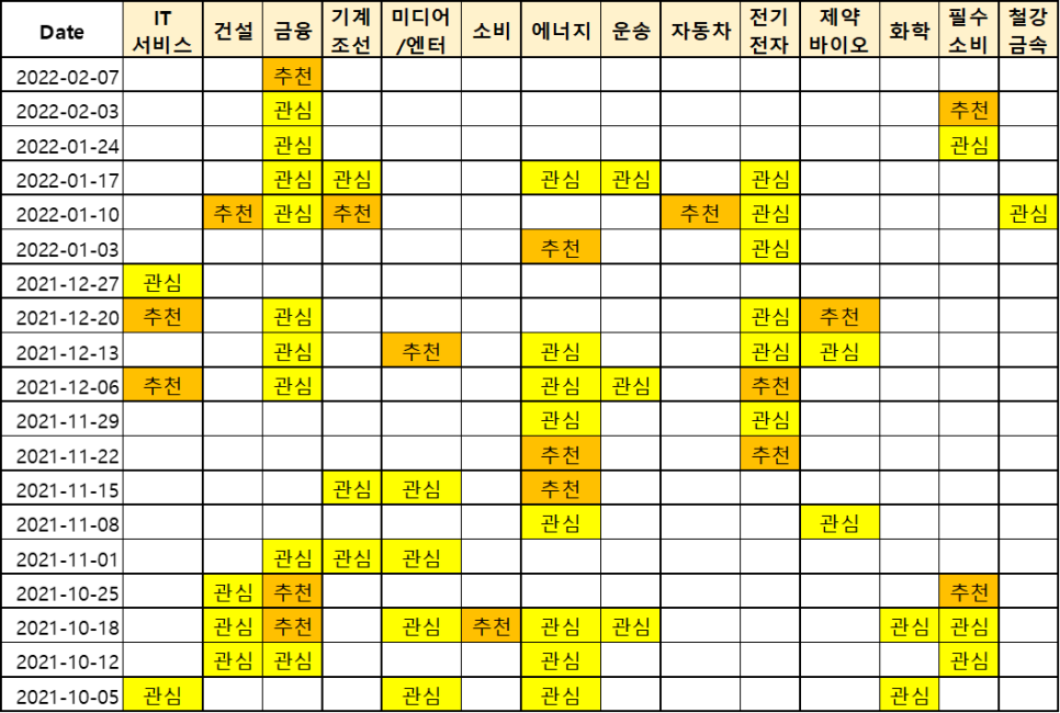 3주 내내 섹터 추천이 매우 좁아졌습니다.. 그 의미는 시장이 계속 어렵고, 그렇기 때문에 선명하게 현실을 방어한다는 것입니다. 금융은 대표적인 배당주이고, 내수주이며, 금리인상 수혜영역입니다.