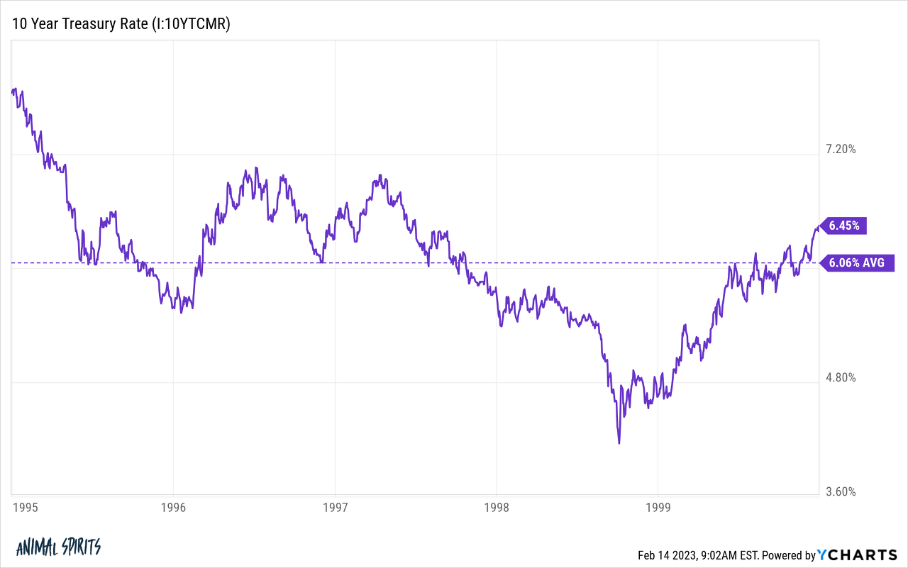 1995년부터 1999년까지 10년 만기 국채 수익률은 평균 6% 이상이었습니다. 나스닥은 그 당시 연간 40% 이상의 복리 수익률을 기록했습니다 .