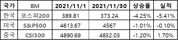 BM지수는 코스피200, S&P500, CSI300 입니다.