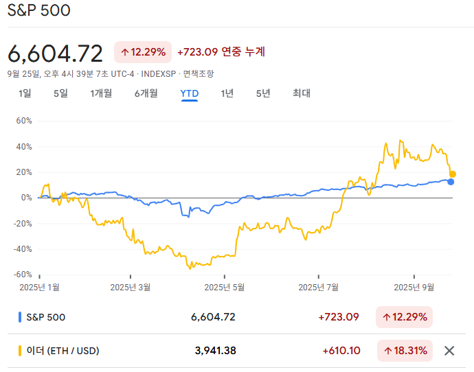 - 양방향 인과성(Bidirectional): 2024~2025 연구 대부분에서 지배적. S&P 500의 거시 충격(예: Fed 정책)이 ETH에 선행하나, ETH의 DeFi 변동성이 S&P 500 위험 프리미엄에 역피드백. 상관계수: 2024 말 ~0.65 (BTC 0.72 대비 낮음).