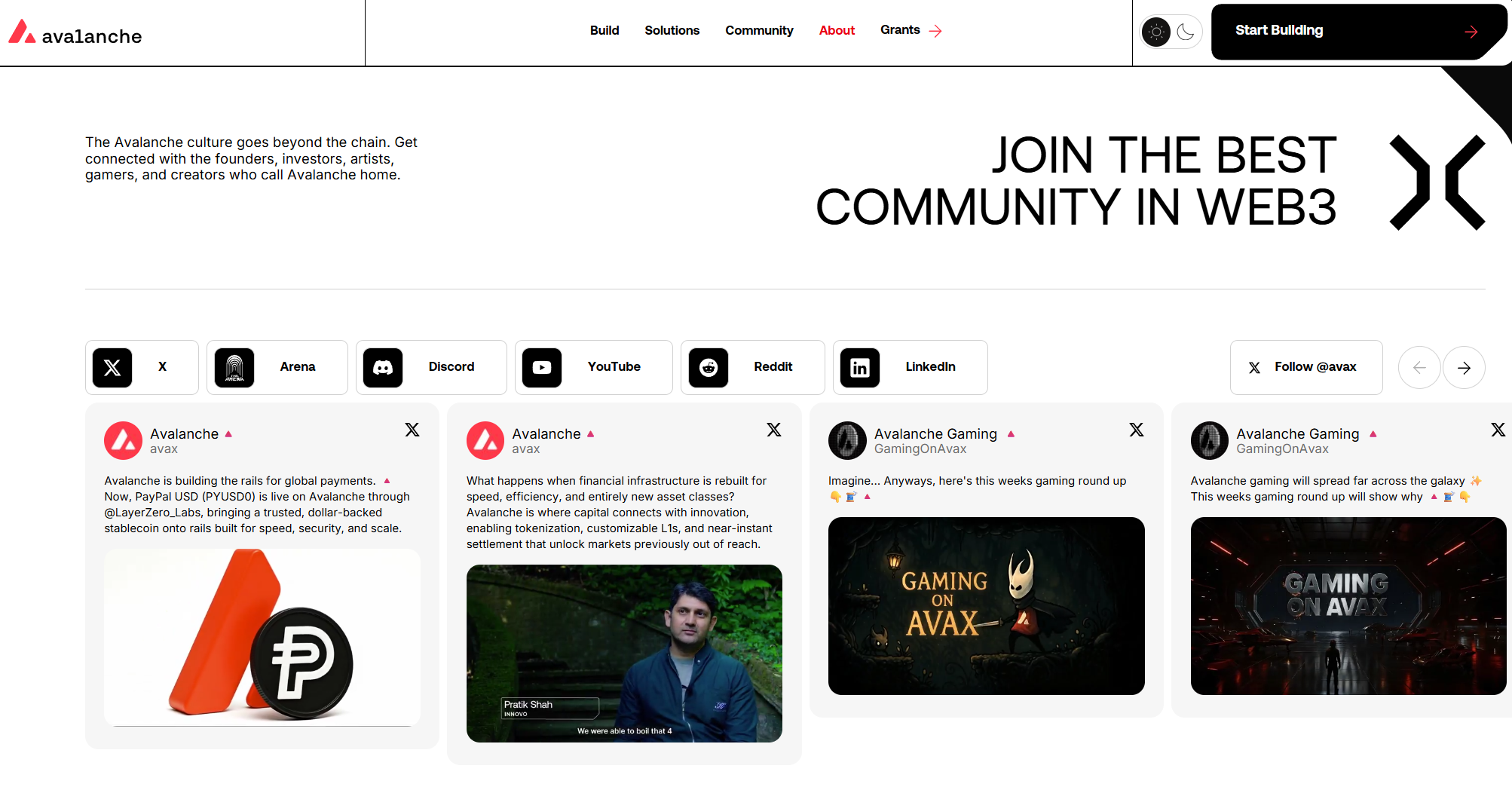Avalanche(AVAX)는 고성능 오픈소스 Layer1 블록체인 플랫폼으로, 확장성, 보안성, 탈중앙화를 동시에 달성하는 것을 목표로 설계되었습니다. 디앱, DeFi, NFT, RWA 등 다양한 응용 분야에서 사용이 확장되며, 이더리움과 완전 호환되는 스마트 계약 환경을 제공합니다.